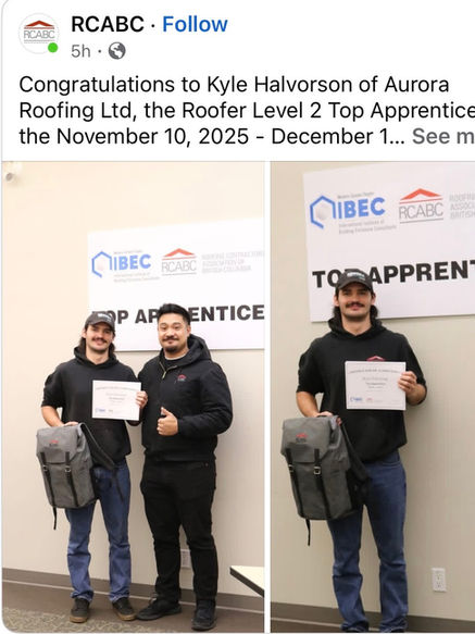We are proud to recognize the accomplishments of our hard working team members. Congratulations to the top apprentices representing Aurora Roofing!
